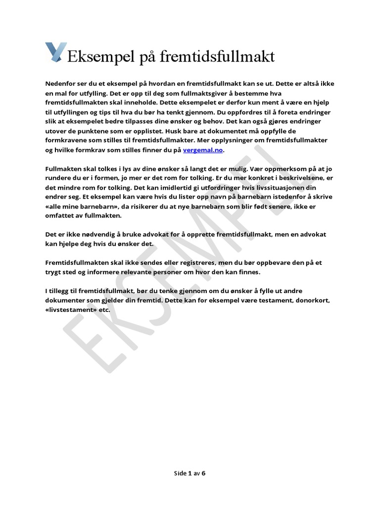 Eksempel På Fremtidsfullmakt 2020 | PDF